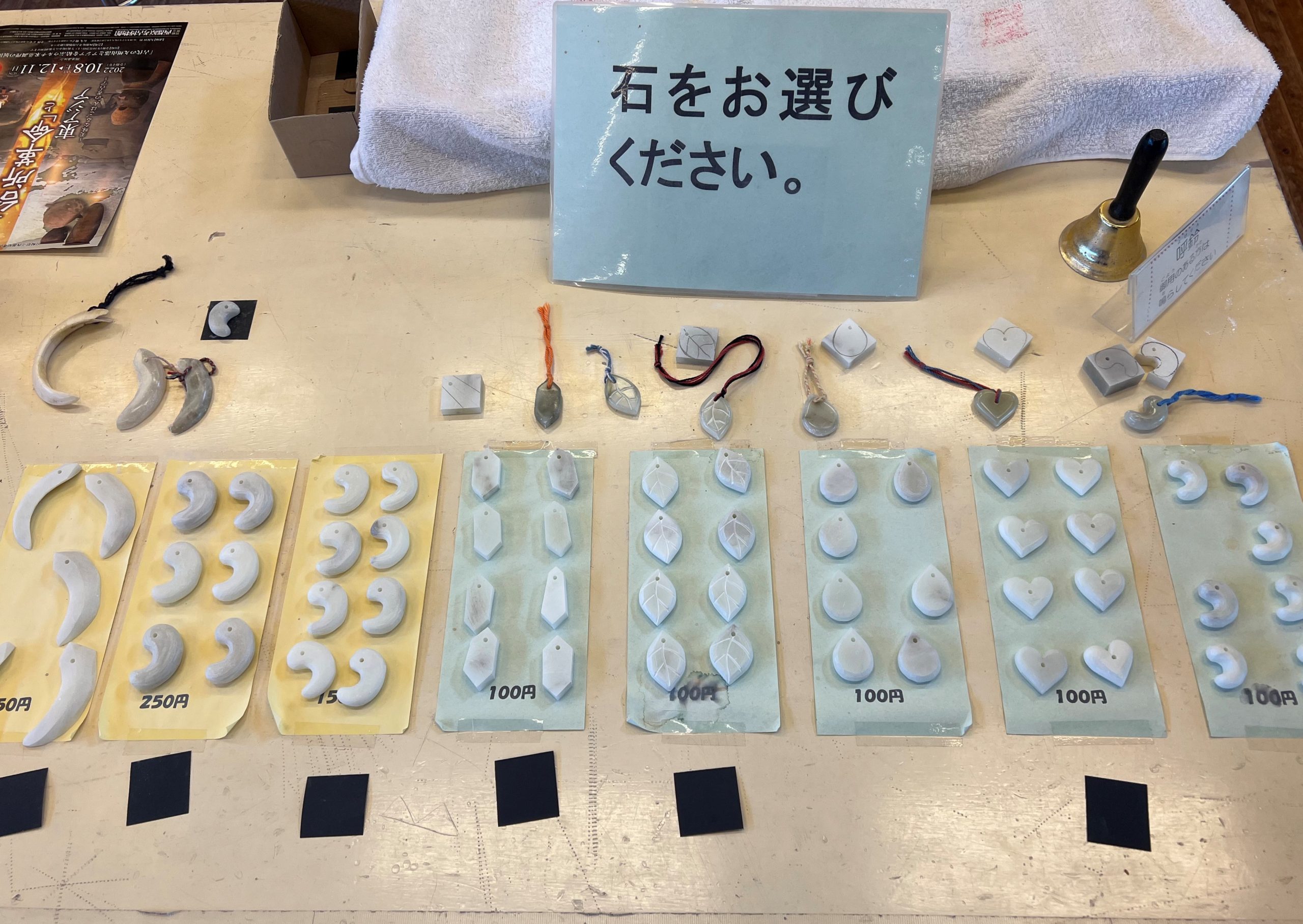 好きな大きさ、形の勾玉を選びます。