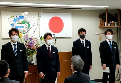 うららかな晴天の下、令和3年度入社式を執り行いました。