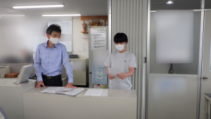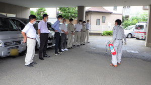 社員寮各部屋の火災報知器点検終了後、千代田防災からお呼びした講師の平沼様の