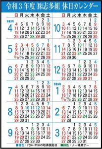 弊社では毎年、福利厚生の一環として「志多組休日カレンダー」を