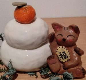 趣味と実益を兼ねて作った陶器の鏡餅(&招き猫)