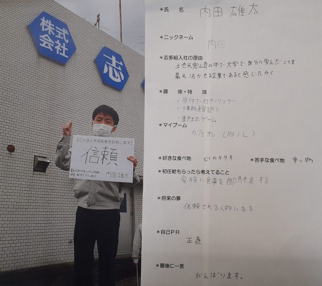 【土木本部 内田 雄太 君 ~ 高知工科大学出身】