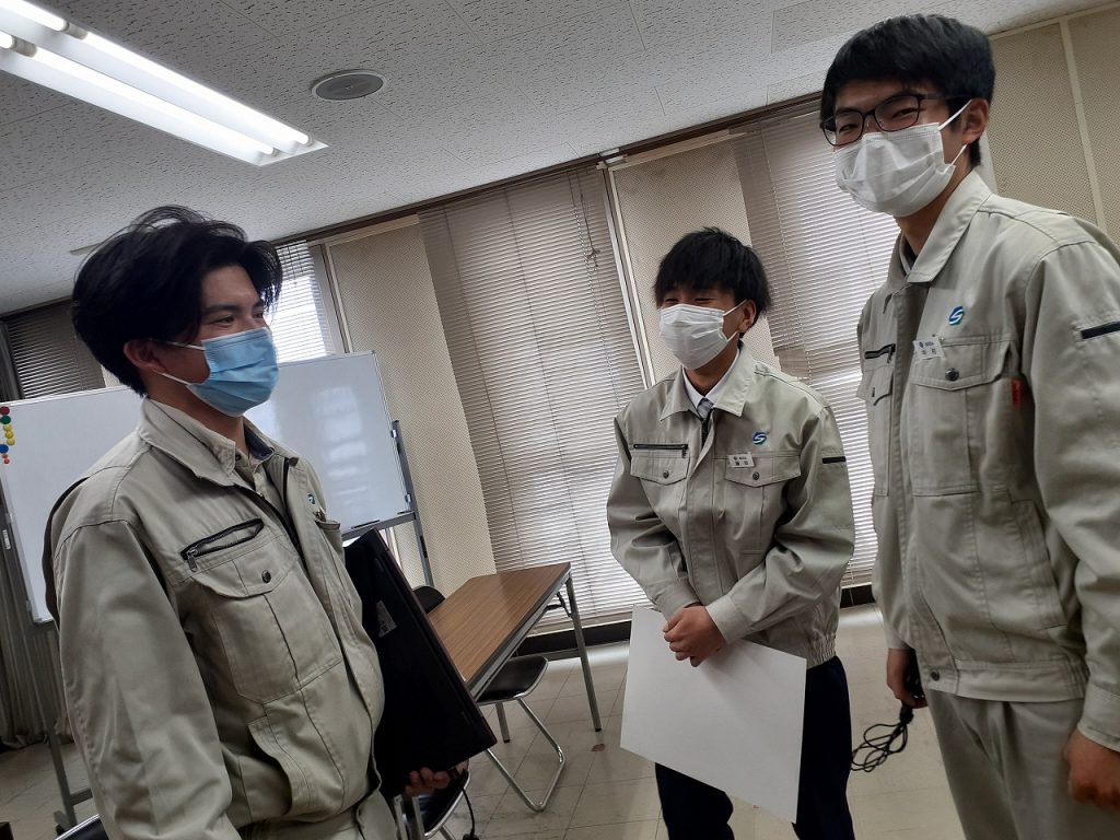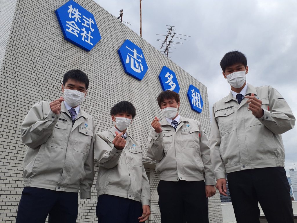 入社2年目の 中村幸弘係員 一番右(共に、都城工業高校出身)