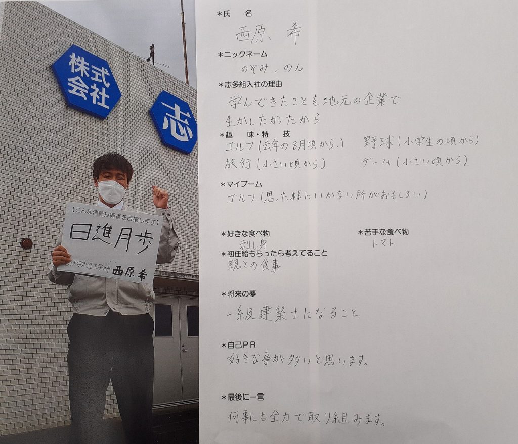 【建築本部 西原 希 君 ~ 大分大学出身 】