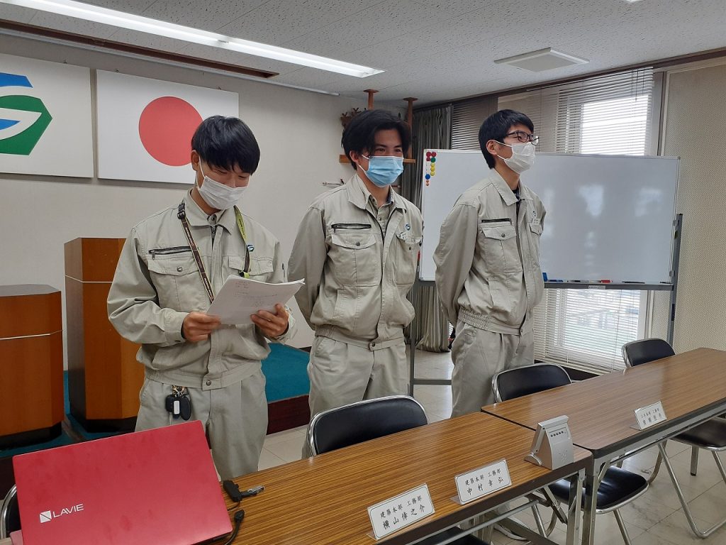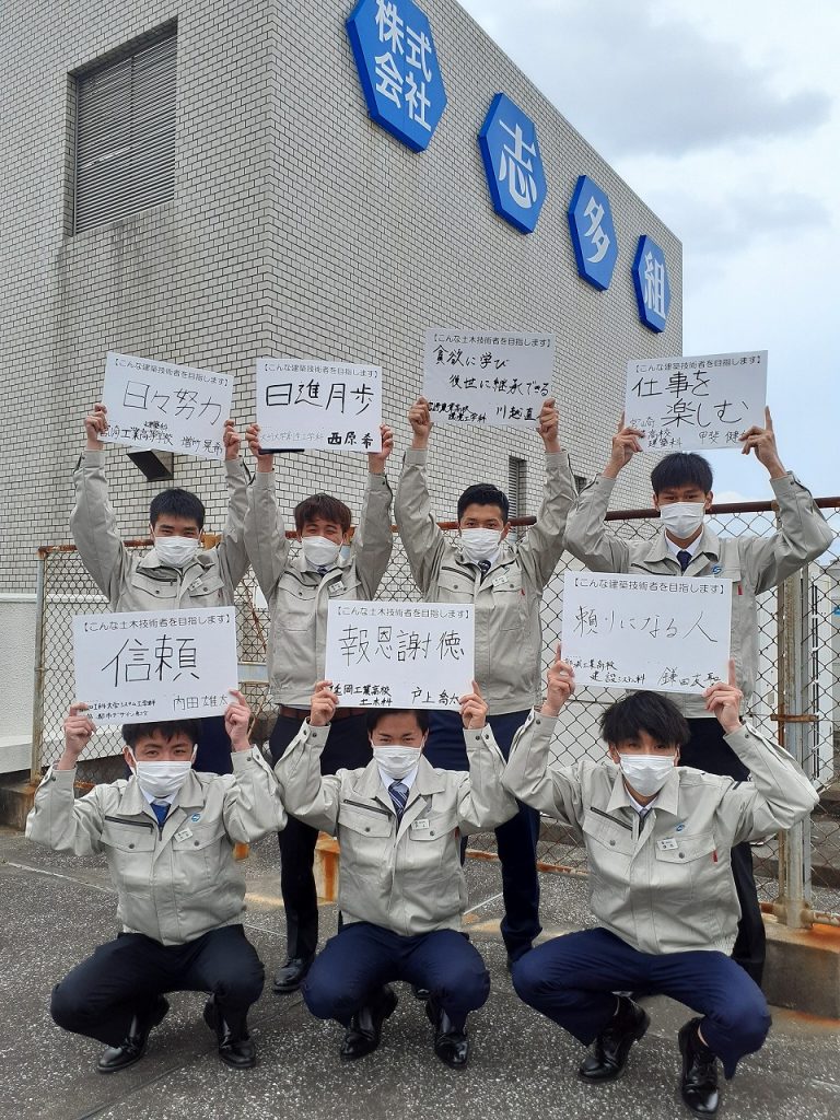 土木本部からは、入社4年目の 廣瀬龍希係員 一番左(延岡工業高校出身)