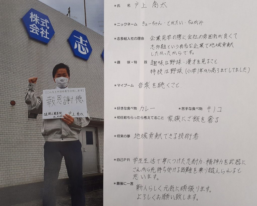 【土木本部 戸上 喬太 君 ~ 延岡工業高校出身】
