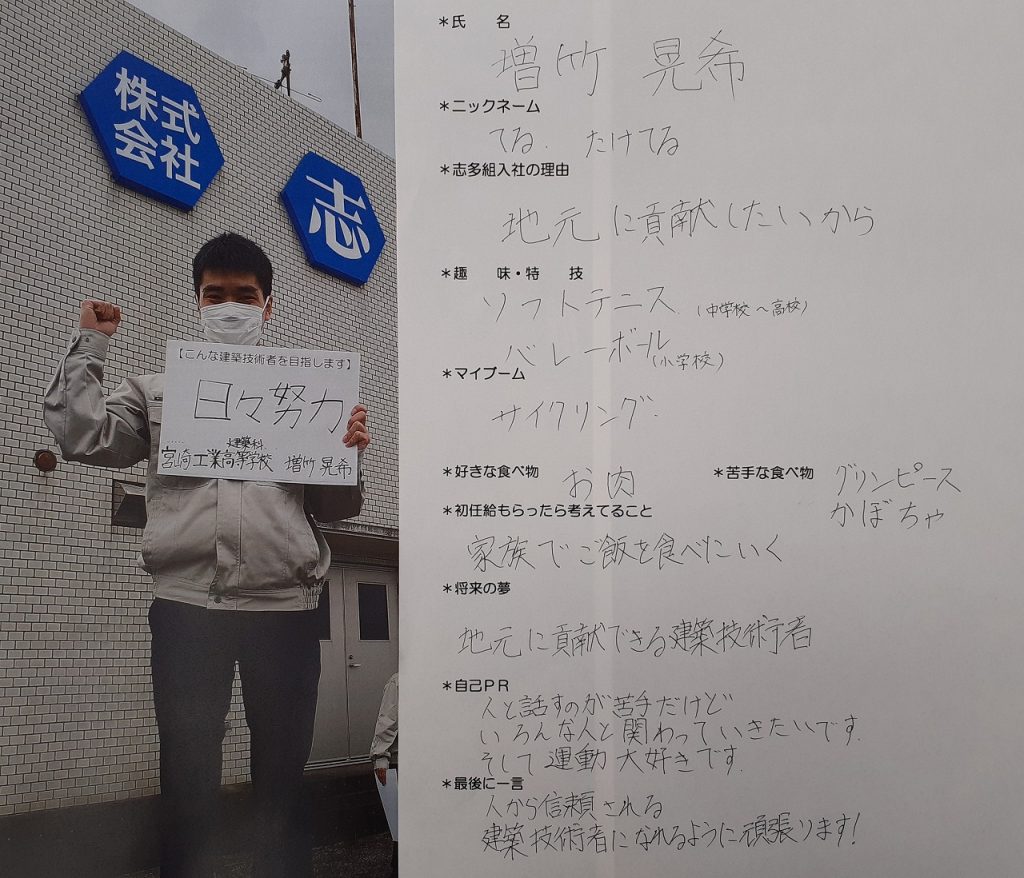 【建築本部 増竹 晃希 君 ~ 宮崎工業高校出身】