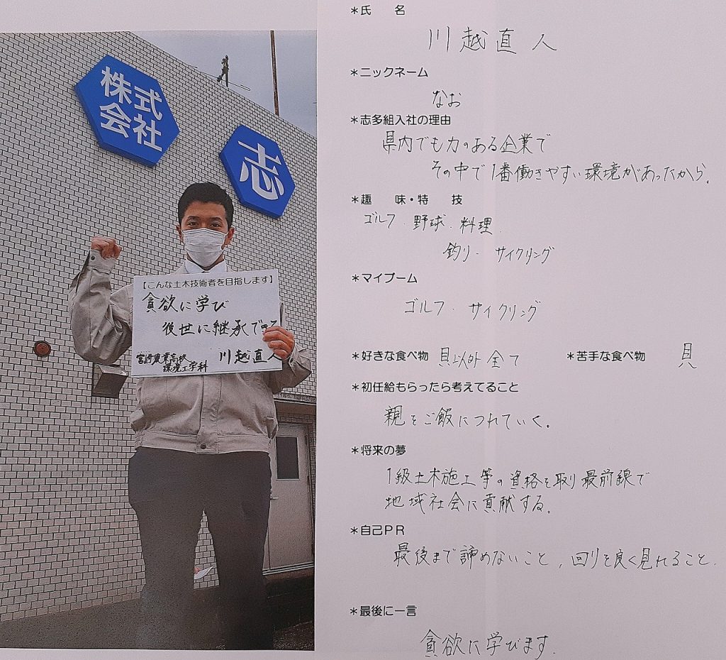 【土木本部 川越 直人 君 ~ 宮崎農業高校出身】