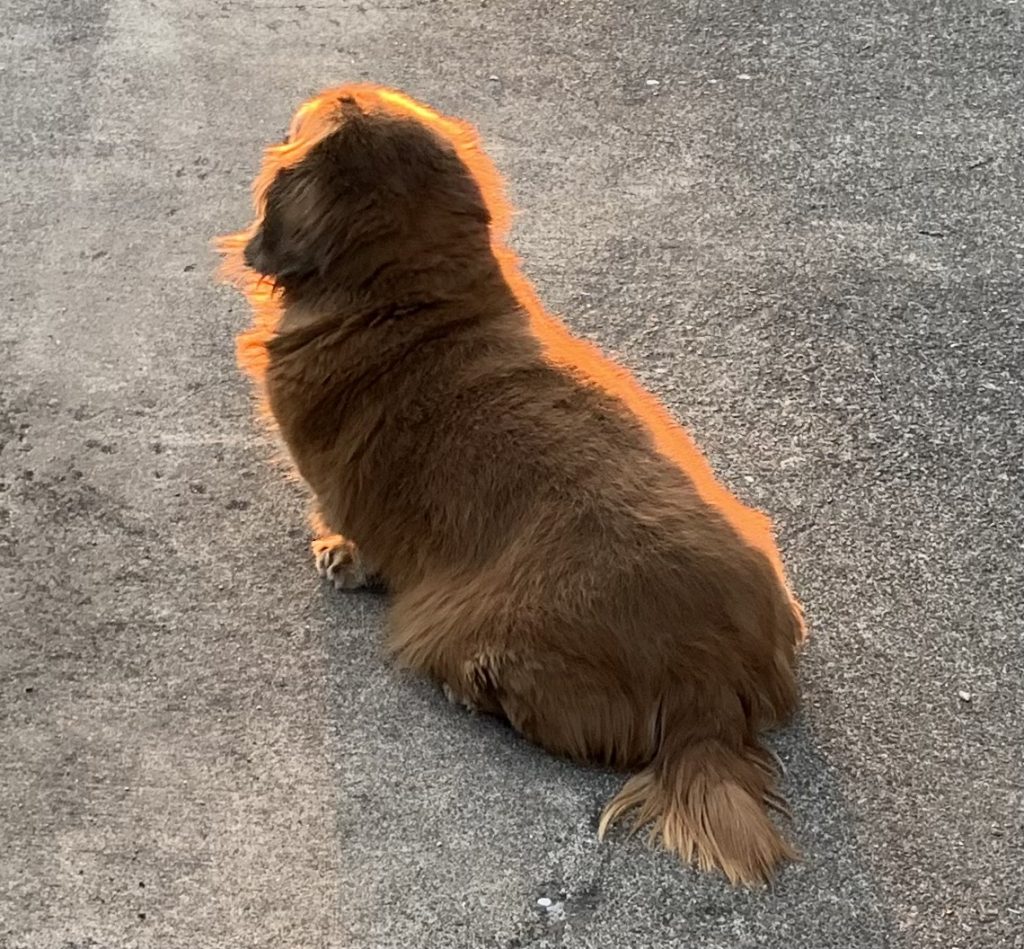 優雅に夕日を浴びて毛先が黄金に輝いてるチャチャちゃんです!