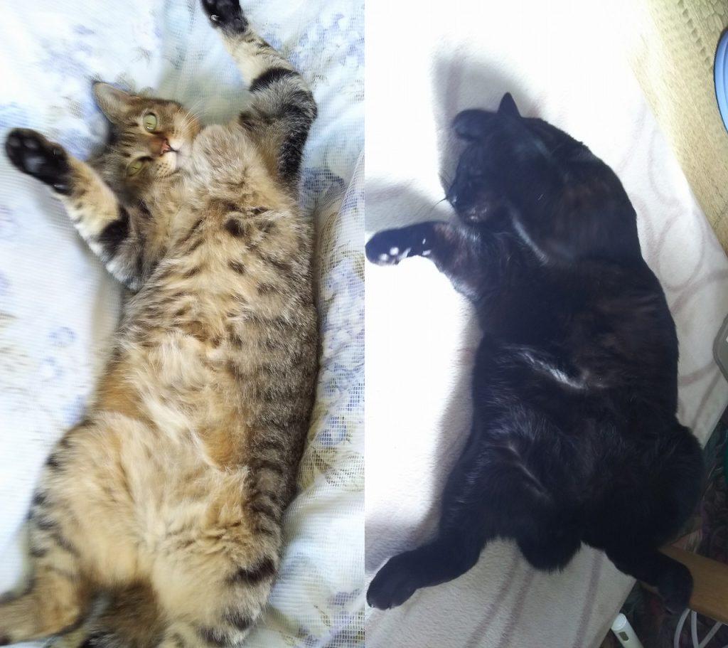 お腹を見せてリラックス状態、佐藤さんの愛情をたっぷり受けて幸せな子達です❤