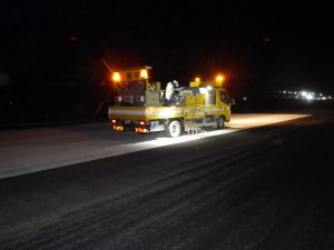 昼とは違った真夜中の空港では志多組の社員が・・・巡回点検(滑走路)