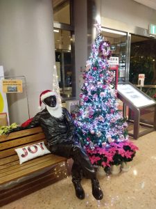 サンタ姿の温水さんもお待ちしてますよ。今年は出迎えロビーも賑やかになりそうです。久し振りに会う懐かしい顔・・・年末年始の空港は、テンション上がりますよね~