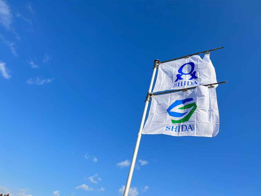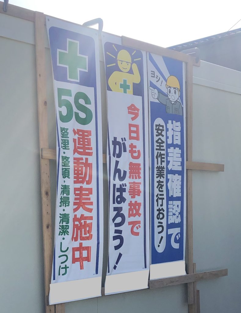 敷地の入り口には当社の社旗(写真:下)と安全旗(写真:上)が掲げてありました。
