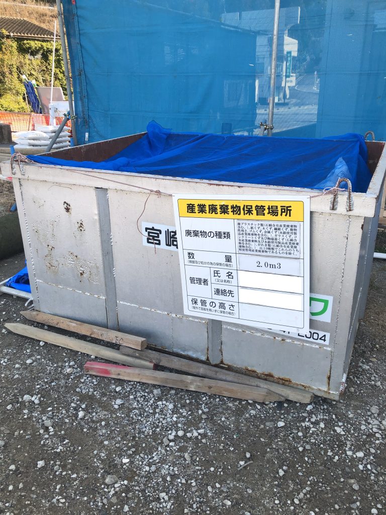 産業廃棄物保管場所であることの明記と廃棄物の種類を掲示することで、