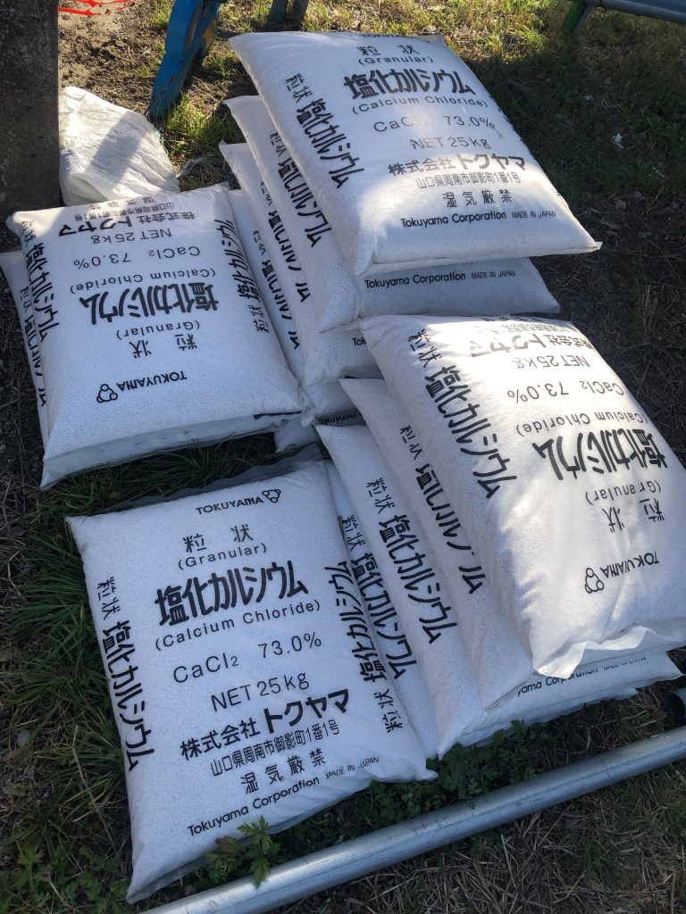 現場に向かう途中には「塩化カルシウム」が置いてありました。