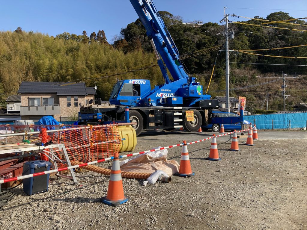 機械が無くてはならない工事ですが、共同企業体3社のチームワークにより、