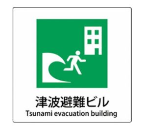 ・津波からの避難に際し、近くに高台がない場合、津 波からの 避難が可能な鉄筋コンクリート造3階建のビルを示すとともに、地震発生時には、避難ビルへ 向かわせるもの。