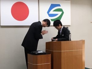 社長のお話を聞いたのち、少し緊張した面持ちで9名が辞令を受け取りました。