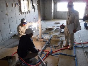 設備配管状況や断熱材の厚さなどを第三者機関の検査官が見て回ります。