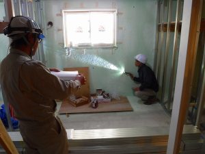住宅の品質確保の促進等に関する法律(略称;品確法)による、住宅性能評価の現場検査状況(2019年4月16日撮影)です。