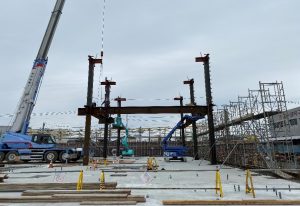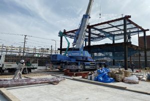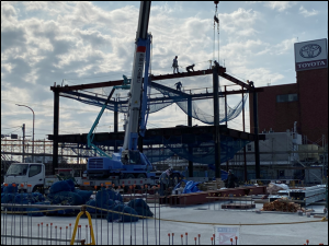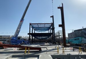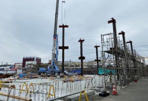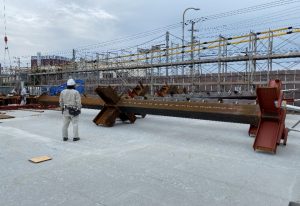 この工程を8工区まで繰り返し、約20日ほどで鉄骨建方が完了です。