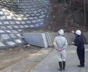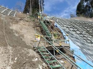 着手当初は斜面の崩壊に伴う倒木の処理等々に時間を要しましたが、