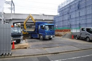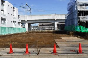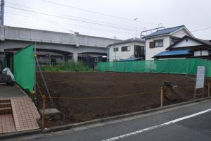 敷地奥にJR中央線が走っており、着手前にJRと協議を行います。