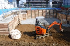 ここから建物の位置を出して、山留め ⇒ 根伐り(ねぎり) ⇒ 基礎工事 の順番で進めて行きます。
