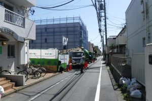 工事場所が閑静な住宅街にあるため、かなり気を使います。