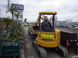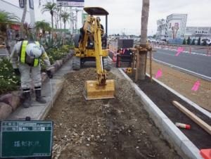 バックホーにて掘削を行い、転圧機械にて転圧して掘削完了です。