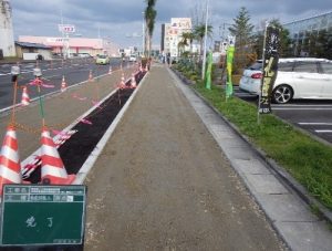宮崎駅東側の道路につながる(何年後?)道路の歩道整備工事です。