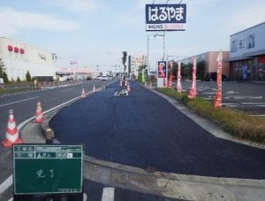 施工場所は、吉村町の “ゴルフ5“・“バックのあつた”・“ダイレックス” 前になります。(お客が多いわ!)