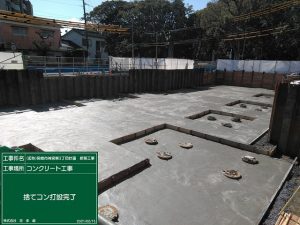 基礎工事用の捨てコンクリートを打設し、いよいよ本格的な工事に入っていきます。