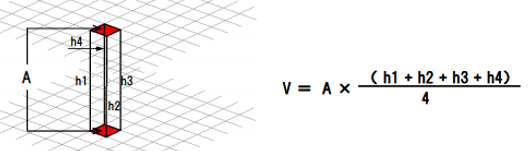 細かく分割した柱を集計して全体の土量ΣVを算出