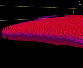起工測量で得られた点群に算出対象の3次元設計データを重ねた空間を、1辺が0.5mのメッシュで細かく柱状に分割します。
