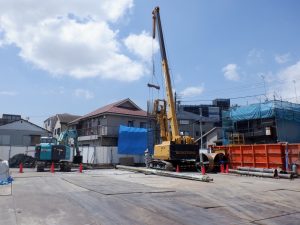 現在は杭工事が終わり基礎工事のための掘削をこれから行います。