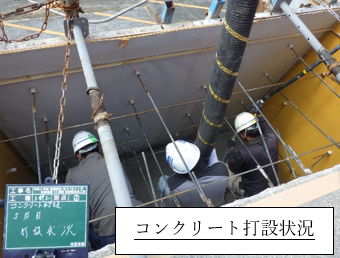 実際は「既設コンクリート部のはつり」→「差筋」→「型枠大組・建込」→ 「コンクリート打設」という作業工程で行っております。