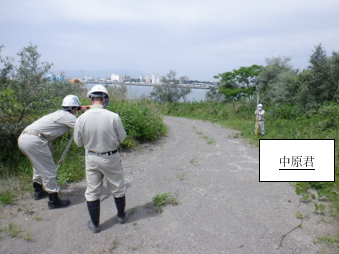 今は研修期間で土木課長講師の元、実際の現場見学や測量の勉強を頑張っています。