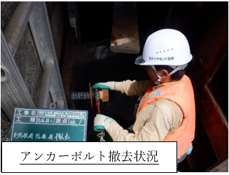 まずアンカーボルトの撤去を行い、続いて本体の撤去を行います。