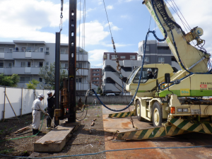 先月は山留め工事を行いました。