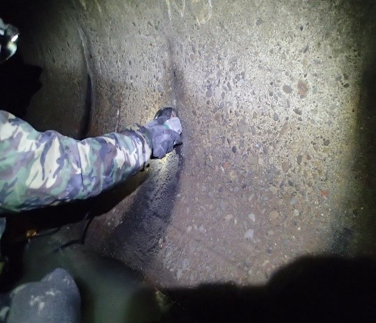 管更生を施工する前に侵入水がある箇所等を急結モルタルで止水します。