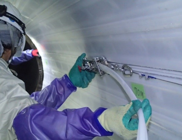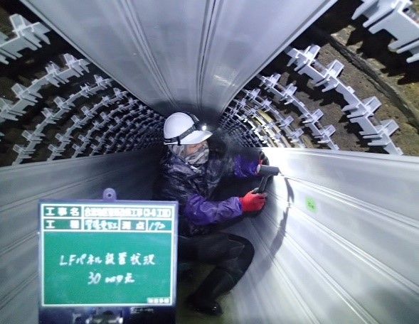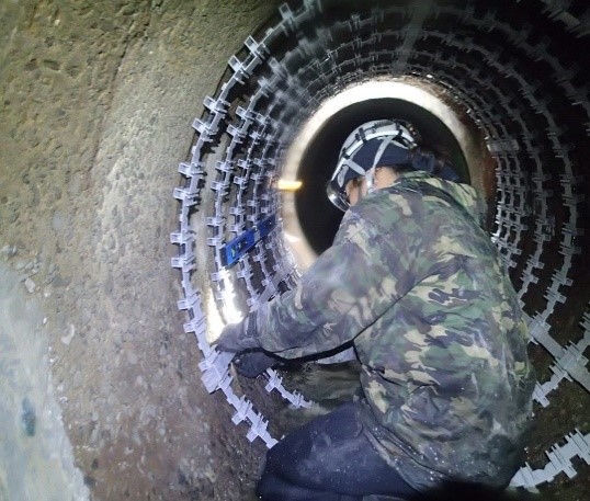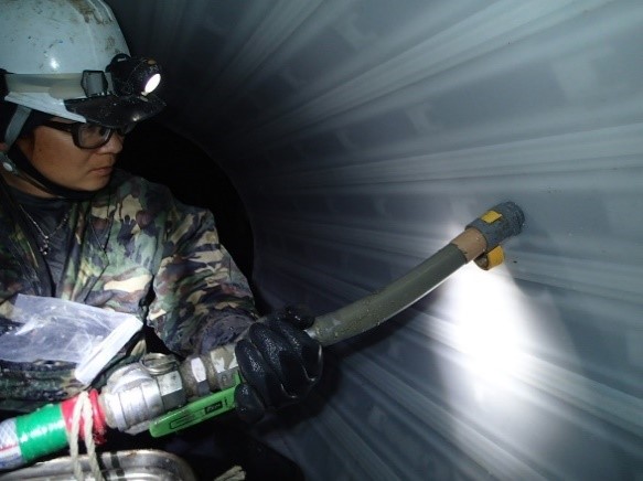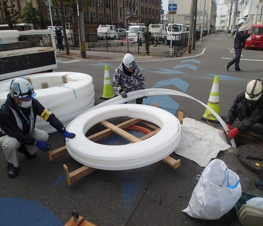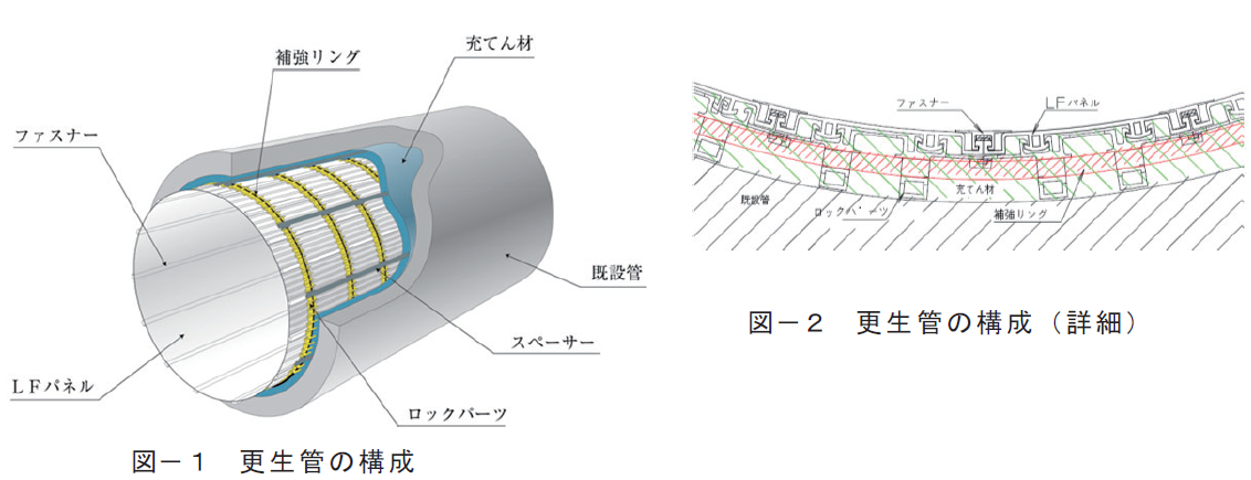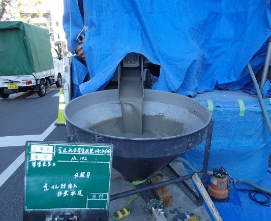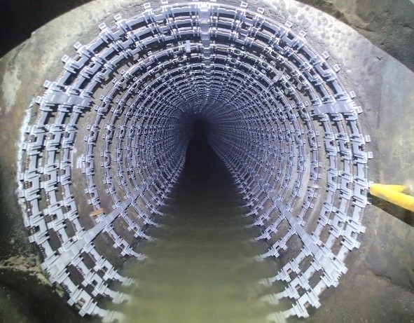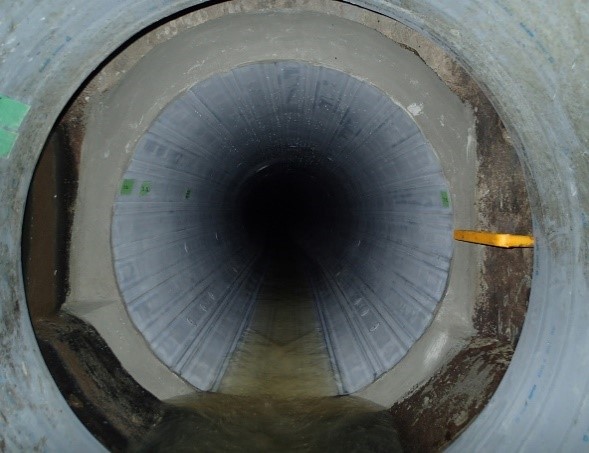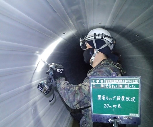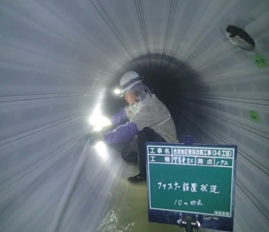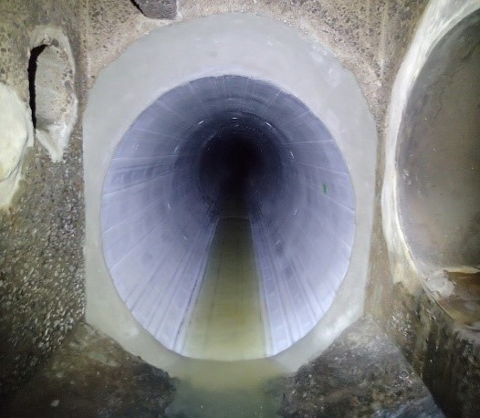 既設管と既設管内に新たに設置した管が一体となった複合管を構築する工事です。