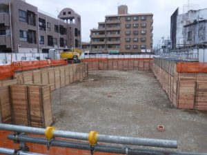 2月に入り、山留工事(地下の基礎工事中に、周辺の地盤や建物が崩れないよう、