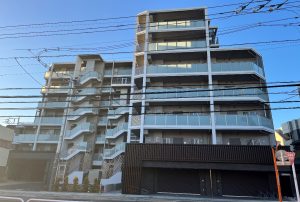 建物は7階建てで、セットバックも多かったため、作業量が多くなり、足場解体まで