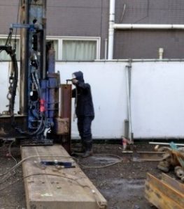 並行して、矢板を山留のH鋼の間にいれていきます。