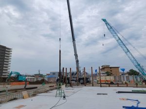 6月末より約5日間掛け、25tクレーンを使い基礎外周の土止めで使用していたH鋼