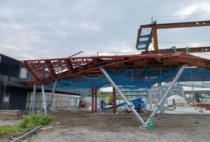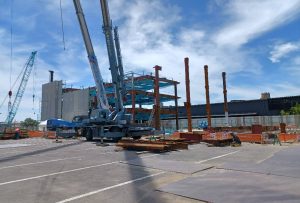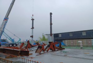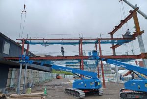 その後、7月3日から70tと20tクレーンにて鉄骨の建方作業に着手しました。