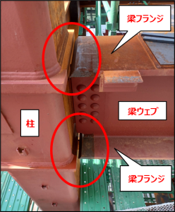 ◆本体:鉄骨工事(溶接前箇所 ○印溶接箇所)