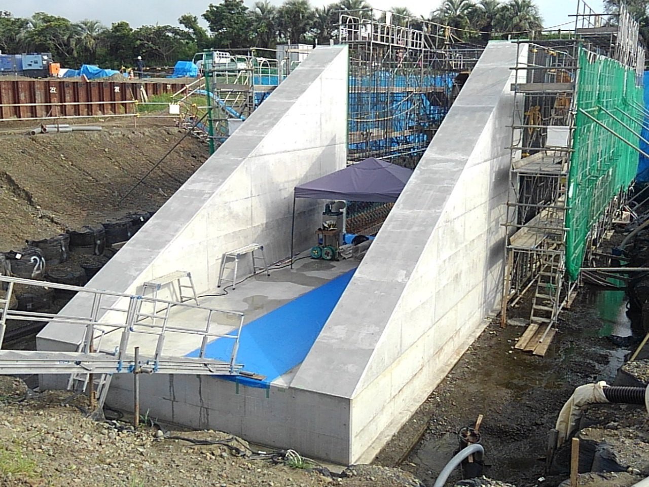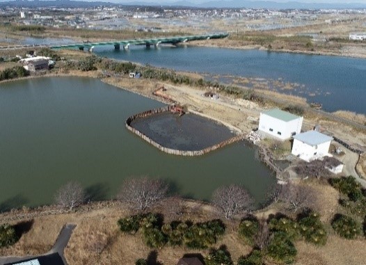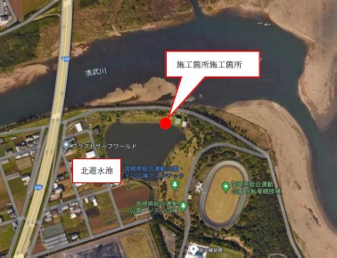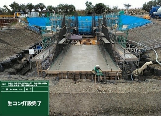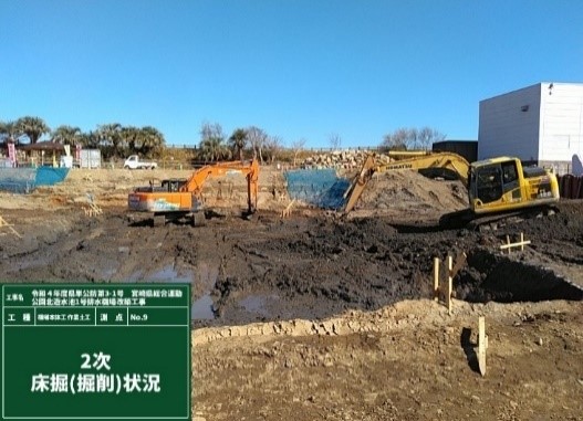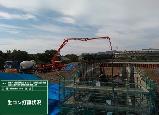 今回、宮崎県総合運動公園北遊水池1号排水機場改築工事の現場紹介をします。