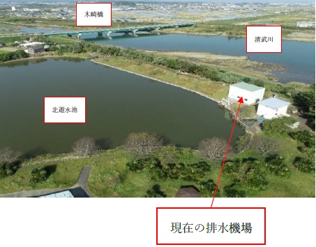 北遊水池に溜まった水を清武川に排出するための工事です。
